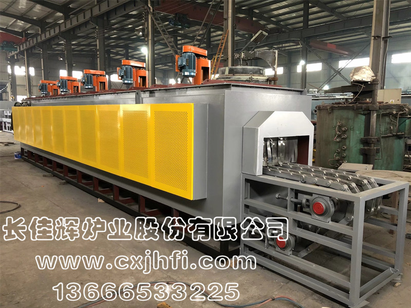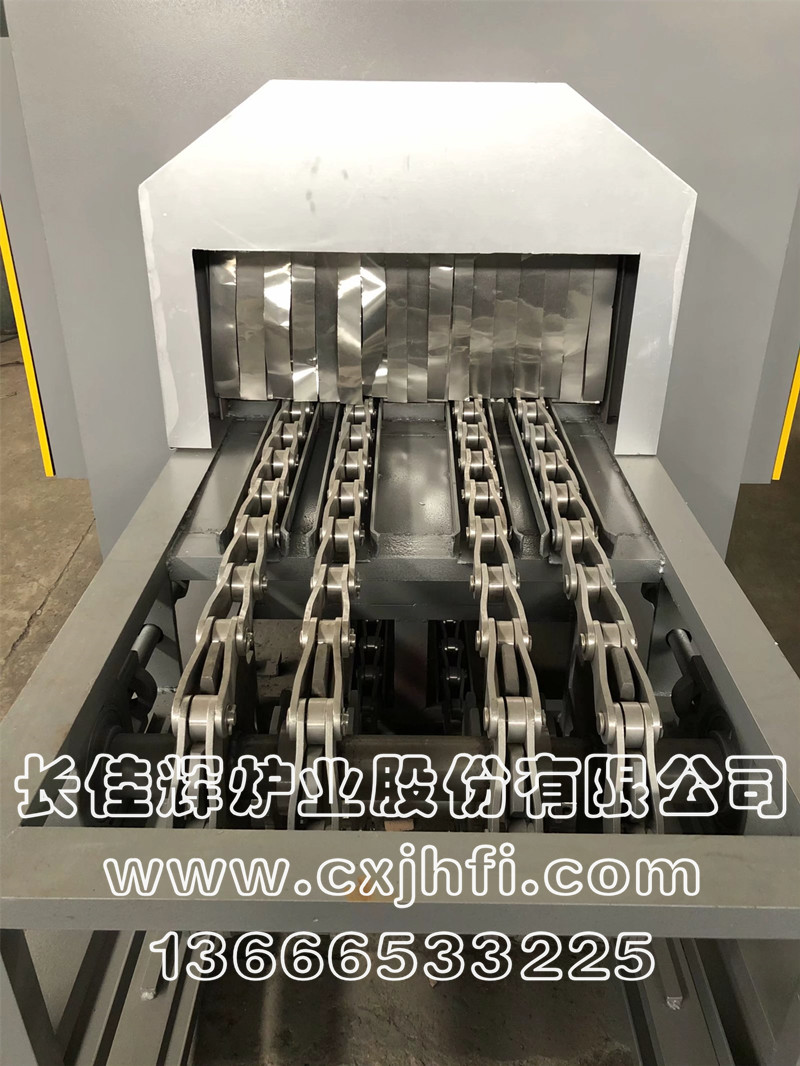 鏈帶式鋁棒加熱爐 此設(shè)備可根據(jù)用戶要求進行定制、定做,服務(wù)熱線:13666533225 鏈帶式鋁棒加熱爐,主要適用于鋁棒材料、鋁合金制品、鋁復(fù)合材料在熱風循環(huán)狀態(tài)下進行均勻加熱,出料后快速熱鍛壓成型。 該生產(chǎn)線具有控制先進、節(jié)能顯著、維修方便等特點,工件輸送采用耐高溫鏈條變頻調(diào)速,全線加熱區(qū)均采用PID自動多區(qū)控溫。