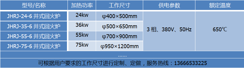井式回火電阻爐 此設(shè)備可根據(jù)用戶要求進行定制、定做,服務(wù)熱線:13666533225 井式回火電爐是周期作業(yè)式電爐,供一般金屬機件在空氣中進行回火以及鋁合金壓鑄件、活塞、鋁板等輕合金機件淬火、退火、時效熱處理之用。 結(jié)構(gòu)簡介:JHRJ系列井式回火電阻爐結(jié)構(gòu)為國家標準井式爐。外殼由鋼板和型鋼制成圓柱形爐體。爐蓋內(nèi)面采用不銹鋼板制成。爐襯采用超輕質(zhì)耐火保溫磚砌筑。爐襯與爐殼夾層置硅酸鋁纖維氈保溫,其余間隙填充膨脹至石粉。電阻絲采用0Cr25Al5高電阻合金絲繞成螺旋狀安裝在爐膛的擱絲磚上。爐膛內(nèi)放置有不銹鋼裝料筐及護欄。爐蓋采用手動扛桿或電動液壓升降。爐蓋上安裝有耐熱不銹鋼軸和風(fēng)葉制成的熱風(fēng)循環(huán)風(fēng)機,使工件在加熱過程中,爐內(nèi)空氣上下循環(huán)以保證工件加熱均勻。