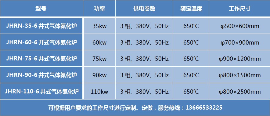 井式氣體氮化爐 此設(shè)備可根據(jù)用戶要求進行定制、定做,服務(wù)熱線:13666533225 井式氣體氮化爐主要用于碳鋼零件的氣體氮化,模具淬火等熱處理之用。該設(shè)備裝有滴液裝置,也可進行氣體氮碳共滲(軟氮化)處理。當在不用通氨氣和滴注裝置時,可作為一般井式回火爐使用。