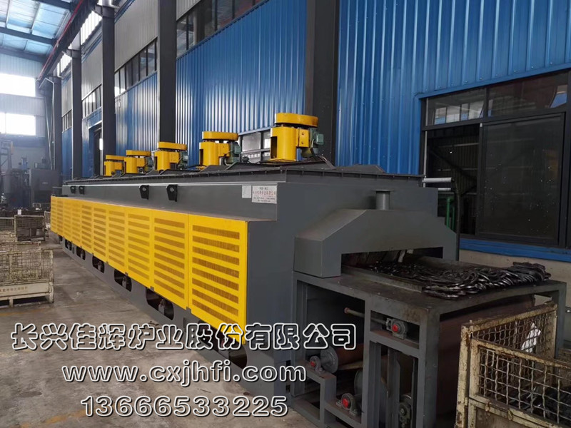 托輥式網(wǎng)帶回火爐 此設(shè)備可根據(jù)用戶(hù)要求進(jìn)行定制、定做,服務(wù)熱線(xiàn):13666533225 常配套與托輥式網(wǎng)帶淬火進(jìn)行后續(xù)的回火處理,主要有燃?xì)饧訜岷碗娂訜醿煞N加熱方式。 適用于機(jī)械零件大批量生產(chǎn),如:軸承、緊固件、鏈條、五金工具、自行車(chē)、汽車(chē)配件等回火處理。 1、本熱處理生產(chǎn)線(xiàn)采用臺(tái)灣爐型、技術(shù)、標(biāo)準(zhǔn)制造、檢驗(yàn),關(guān)鍵部品采用進(jìn)口產(chǎn)品,國(guó)內(nèi)組裝,整體質(zhì)量達(dá)到進(jìn)口同等水平。 2、網(wǎng)帶采用托輥同步傳動(dòng),使網(wǎng)帶運(yùn)行時(shí)承受Z小張力,使用壽命較長(zhǎng)。 3、支承托輥兩端支承采用特殊耐高溫密封軸承,密封可靠。